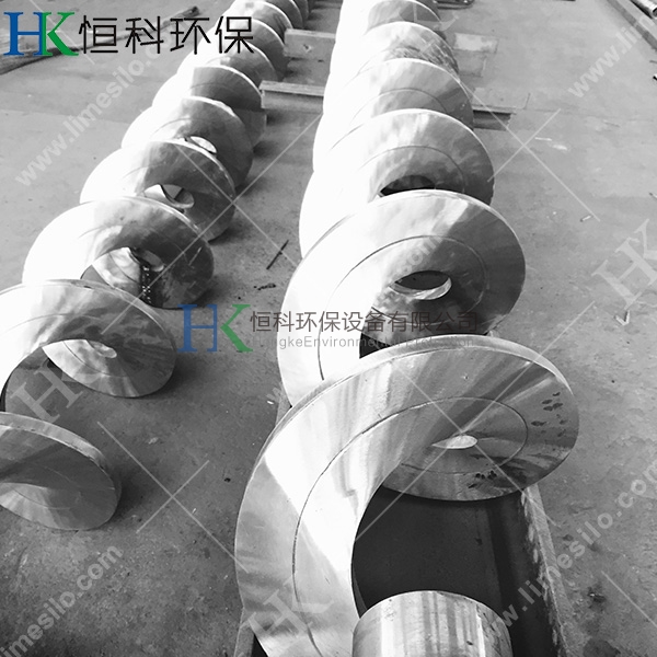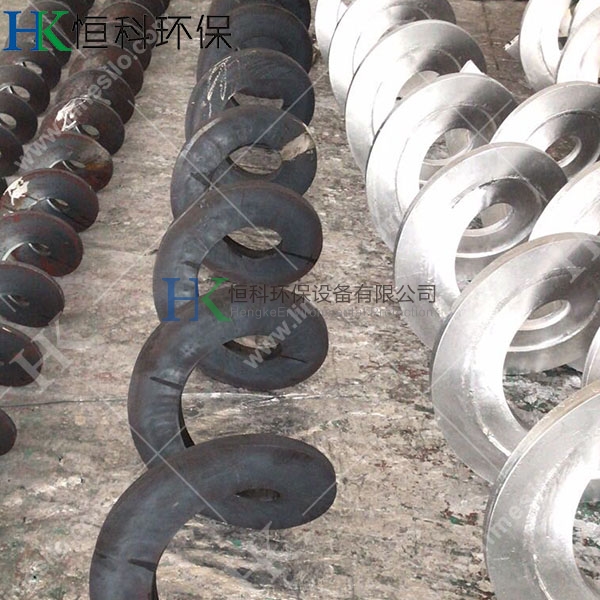 螺旋輸送機(jī)葉片采用連續(xù)(二米一段)成型加工工藝,這種工藝是目前一種比較先進(jìn)的工藝。這種工藝采用扁鋼(原材料平板開條:碳鋼采用火焰切割成扁鋼,不銹鋼采用水刀切割成扁鋼)通過專用設(shè)備直接制作成連續(xù)成型的螺旋葉片。螺旋葉片的各項參數(shù)如外徑,內(nèi)徑,螺距及厚度均可按照要求定制,可根據(jù)實際無軸螺旋輸送機(jī)的長度選取葉片的長度。
